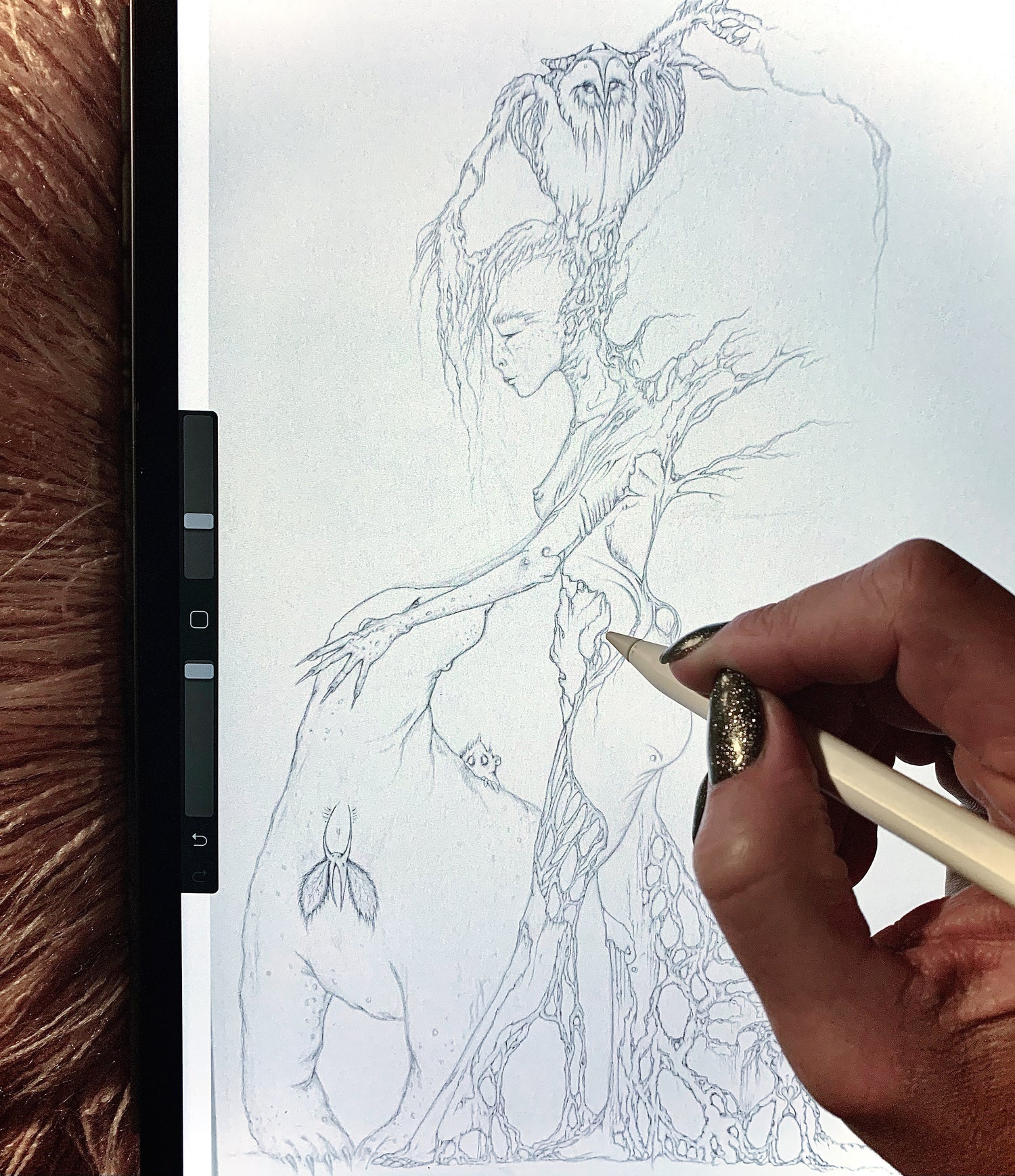 Each piece begins as hand-crafted artwork and is printed on demand as limited-run garments made with organic and recycled materials, using water-based, biodegradable inks that are cruelty-free and non-toxic, creating zero waste for landfills.