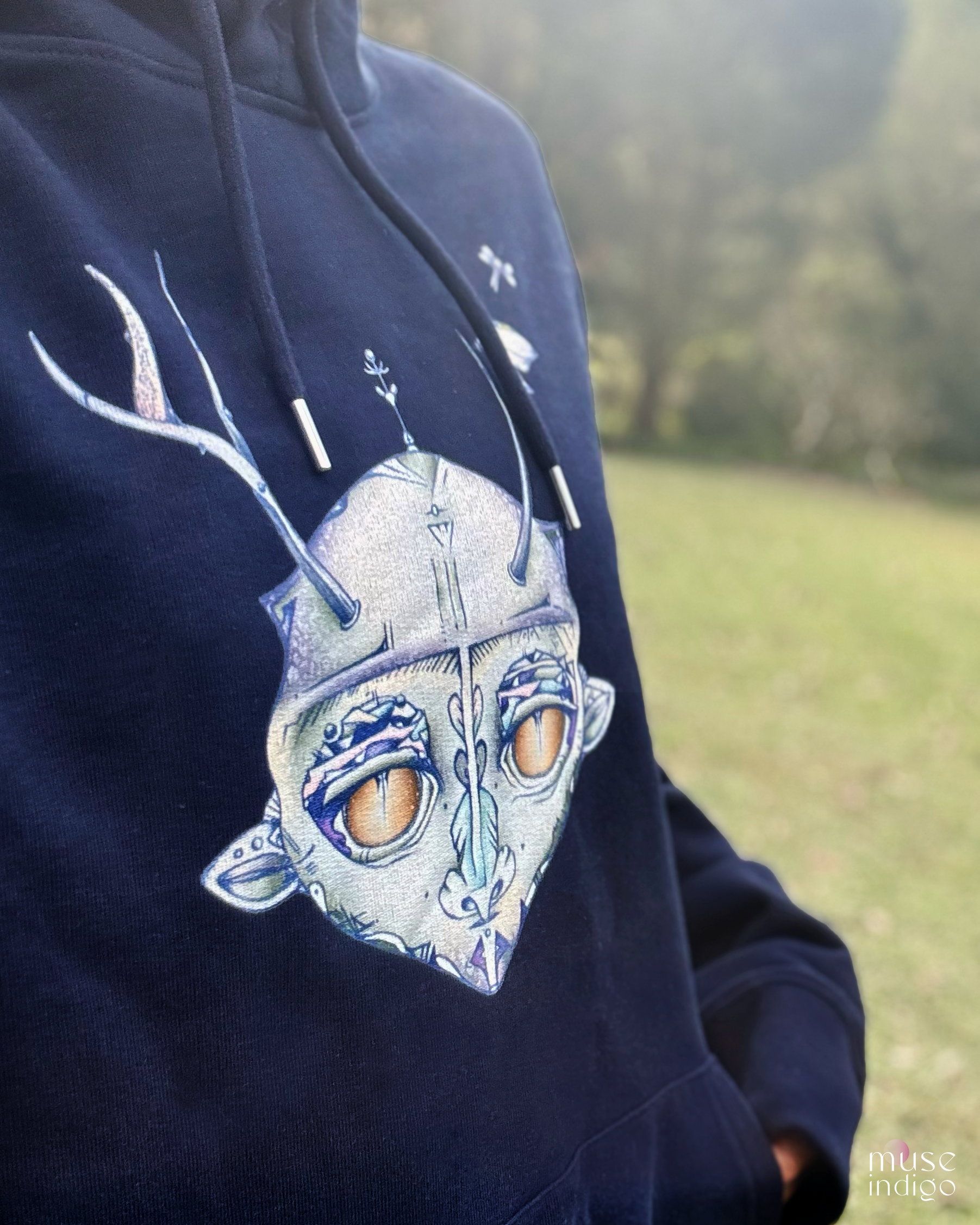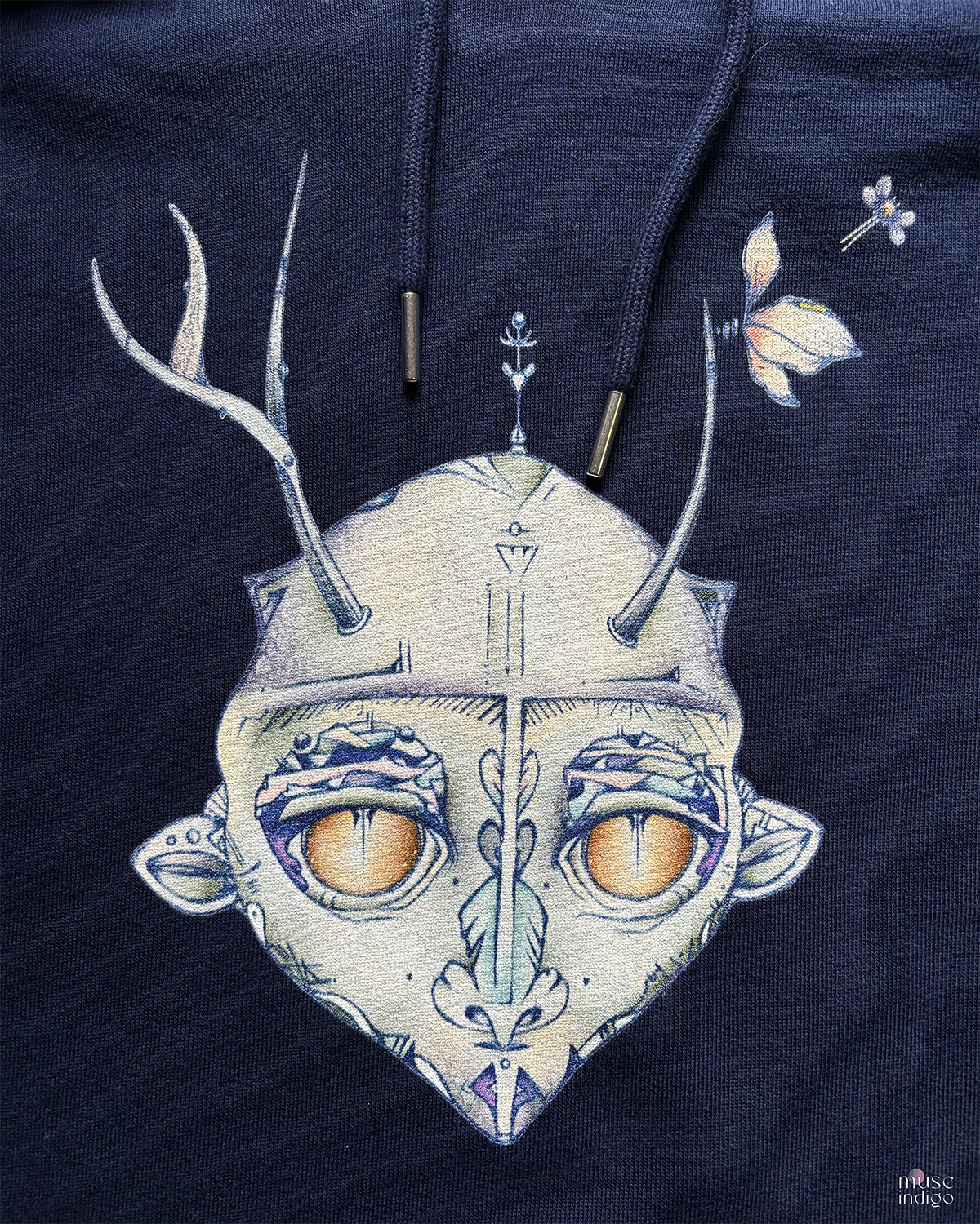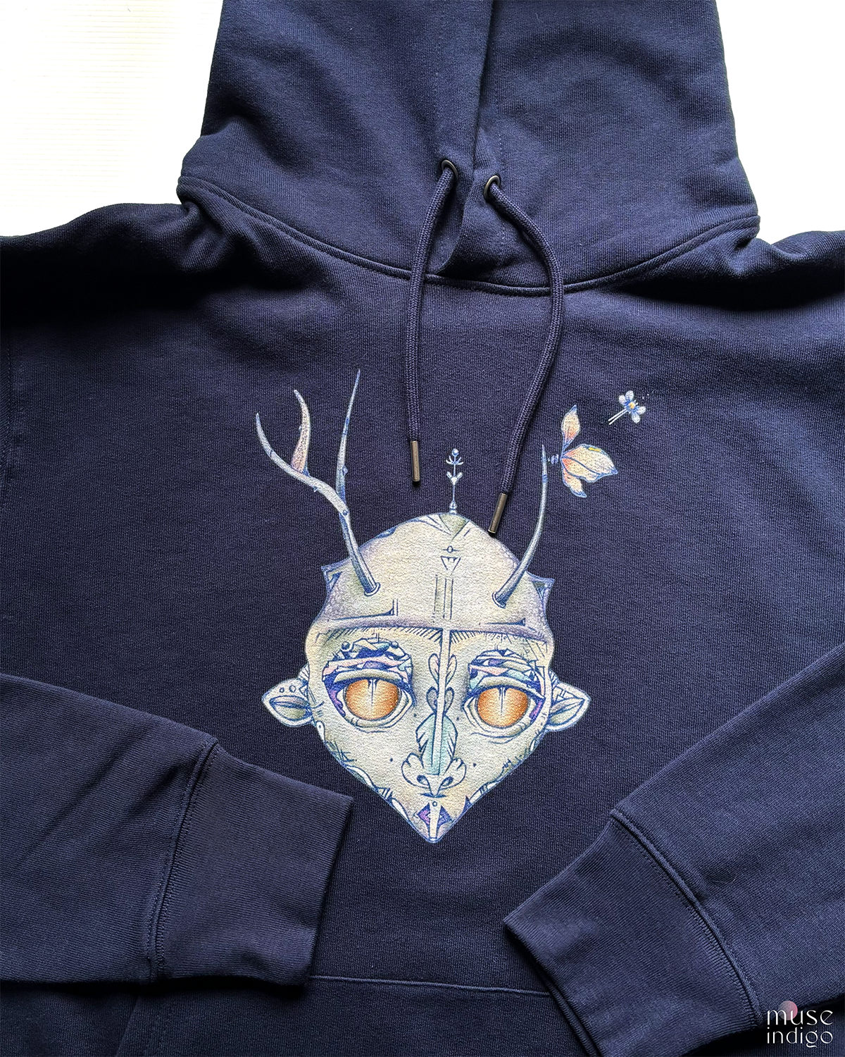 This hoodie carries the calm gaze of protection. Dream Kin walks with you.