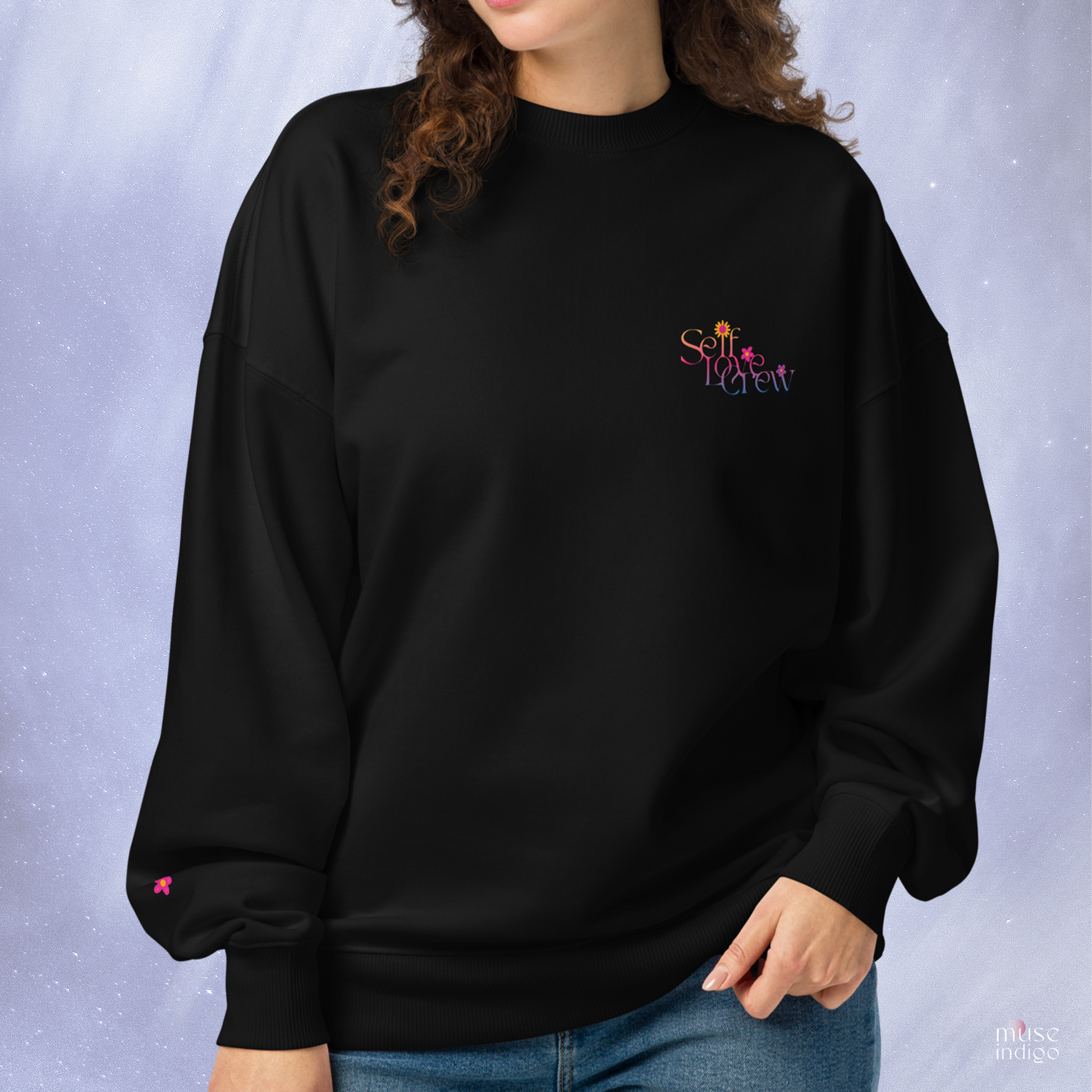 This oversized organic sweatshirt features the Self-Love Crew design for when you need that extra layer of confidence. Soft, ethically made, and perfect for everyday comfort.